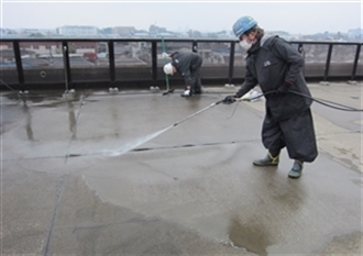 塗装工事や防水工事などの仕上げ工事の前には必ず洗浄工事を行います。せっかくの仕上げ材も汚れた面にそのまま施工しては台無しです。洗浄により汚れをよく落とすことで接着性の向上につながり、耐久年数にも影響を与えます。