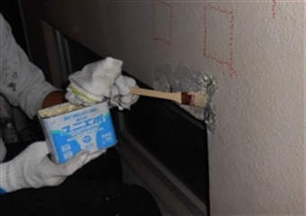 ヘアクラックと言われるような0.3ミリ未満の軽微なひび割れにはセメントフィラーや微弾性フィラーなどの細骨材を刷毛などで擦り込んで処理します。